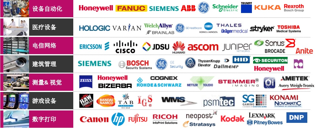 使用圣天諾加密鎖保護設備軟件的部分設備制造商名錄