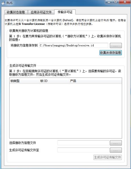 在B電腦上進(jìn)行如圖的操作,打開RUS,選擇接收電腦的相關(guān)信息存儲為receive.id,然后點(diǎn)擊“收集并保存信息”。就會看到已經(jīng)生成了receive.id這個文件。然后,把這個id 文件發(fā)給 A 電腦。