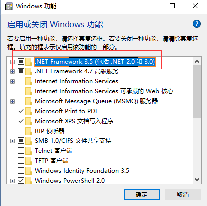 3、安裝前務(wù)必先檢查自己的電腦是否安裝了.NET Frameword3.5,或更高版本。在windows搜索欄中輸入“啟用或關(guān)閉windows功用,”打開(kāi)這個(gè)界面,如果.NET Frameword3.5或更高版本沒(méi)有安裝,就勾選這個(gè)復(fù)選框,點(diǎn)確定后系統(tǒng)會(huì)自動(dòng)更新,更新后重啟電腦再繼續(xù)安裝LDK開(kāi)發(fā)包。